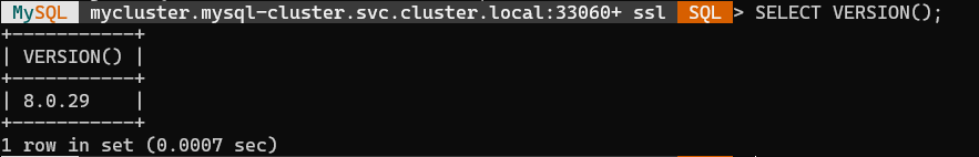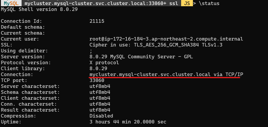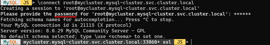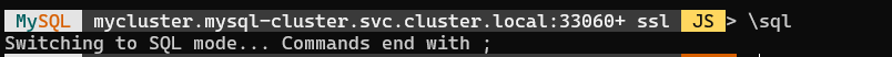 \connect root@mycluster.mysql-cluster.svc.cluster.local