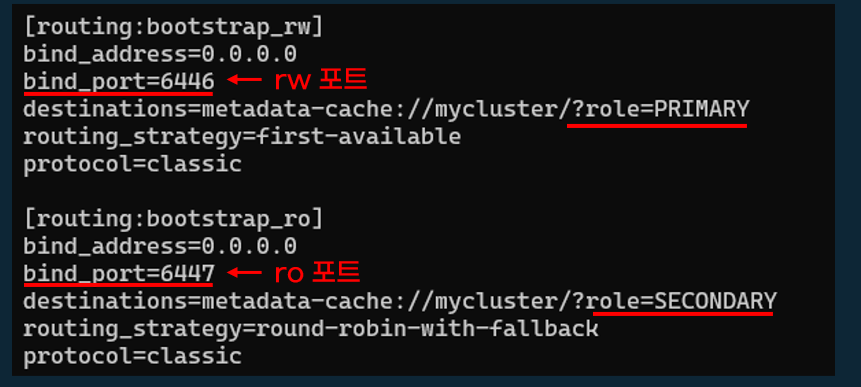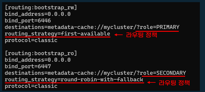 router입장에서 쓰기 작업인지 읽기작업인지 구별하는 방법은 포트번호로 구분합니다. 포트를 설정하지 않으면 first-available에 설정된 라우팅 설정을 따릅니다.