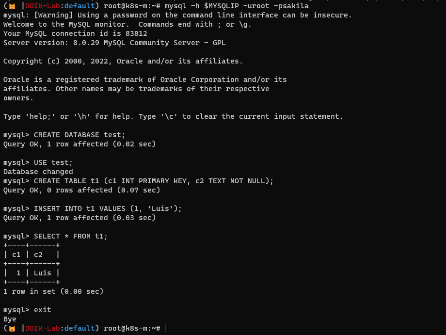 MYSQLIP=$(kubectl get svc -n mysql-cluster mycluster -o jsonpath={.spec.clusterIP})