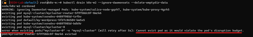 kubectl drain k8s-w2 --ignore-daemonsets --delete-emptydir-data