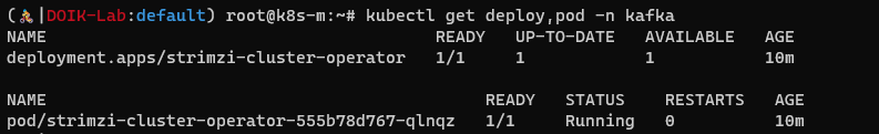 kubectl get deploy,pod -n kafka