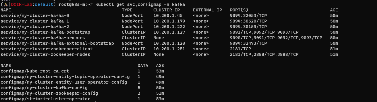kubectl get svc,configmap -n kafka