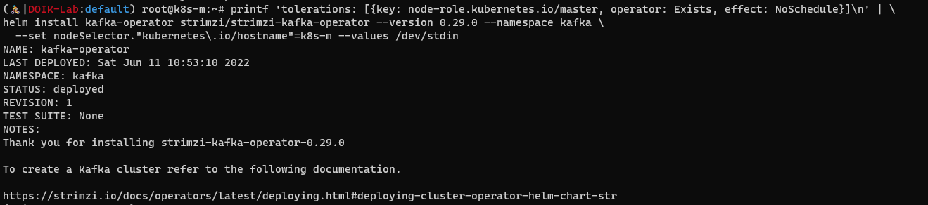 helm install kafka-operator strimzi/strimzi-kafka-operator --version 0.29.0 --namespace kafka \