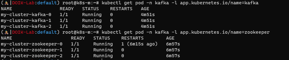 kubectl get pod -n kafka -l app.kubernetes.io/name=zookeeper