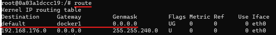 ping통신이 되는 busybox 디폴트 게이트웨이는 docker1로 설정되어 있었습니다.