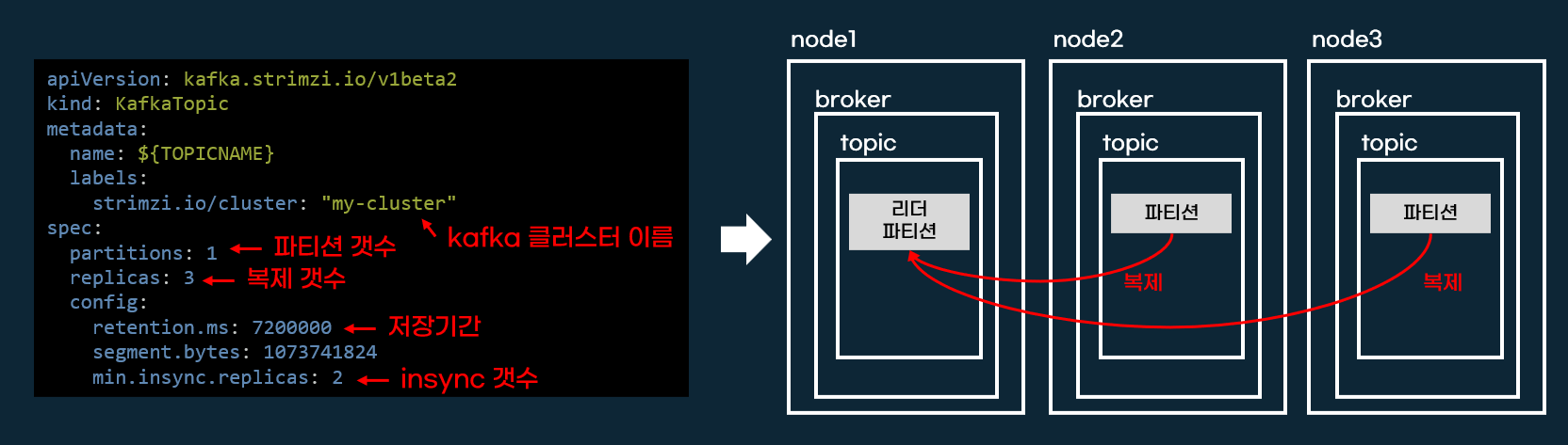 kafkaTopic CRD를 이용하여 쉽게 토픽을 생성할 수 있지만, 카프카 토픽 설정에 대해 알고 있어야 crd를 사용할 수 있습니다.