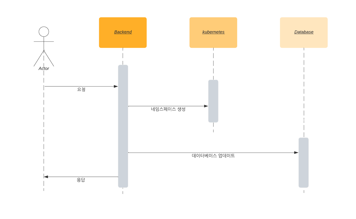 생성은 쿠버네티스 namespace와 database에 행을 추가합니다.