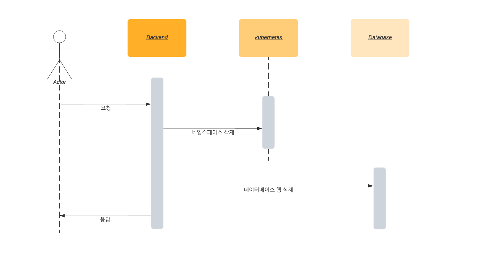 쿠버네티스 namespace와 database row를 삭제합니다.