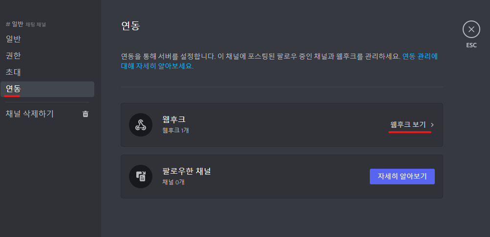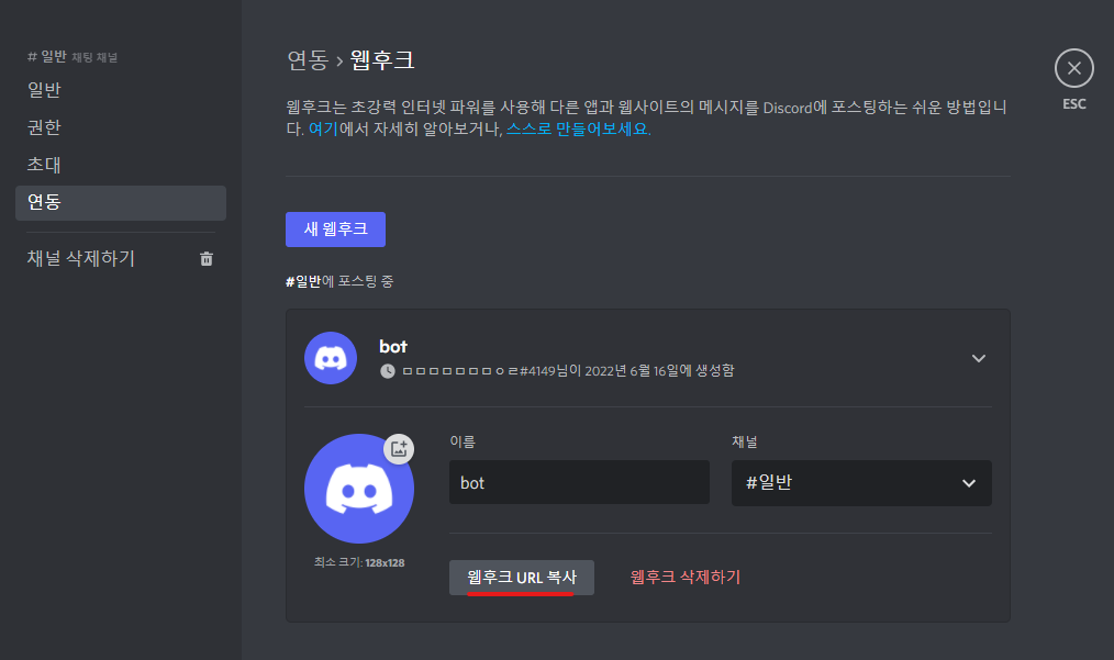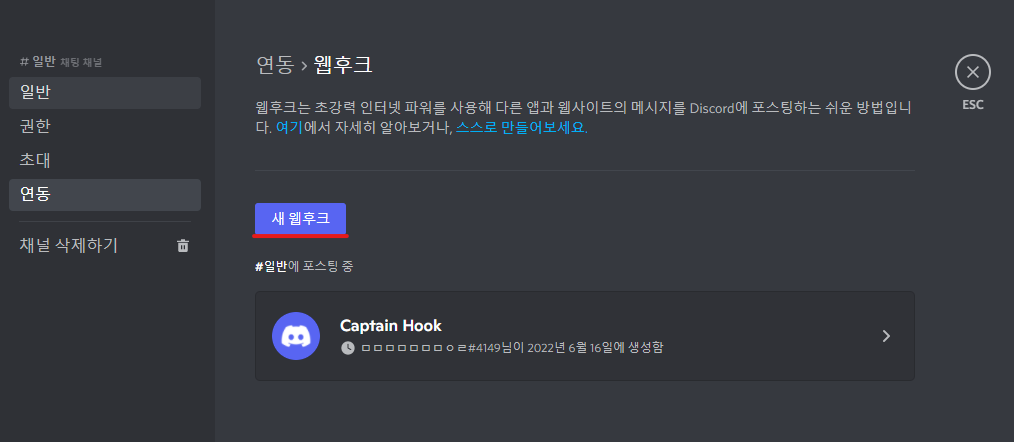 3.2 discord webbhook주소 생성