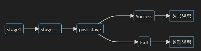 CI/C 시스템에서는 Task가 끝나면 사용자에게 알림을 주는 기능이 필요합니다. jenkins에서는 job이 종료되면 post stage에서 성공/실패에 따라 알림기능을 전송할 수 있습니다. 공식문서에도 친절히 예제를 설명하고 있습니다.