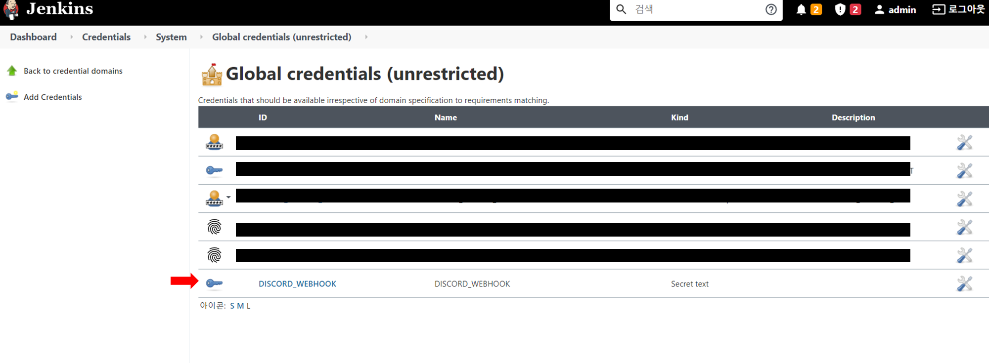[챕터 4]에서 사용한 jenkinsfile은 discord webhook주소가 하드코딩되어 있습니다. 알림기능을 한개 job만 사용하면 상관없지만, 다수의 job에 사용한다면 jenkins credentials화 함께 사용하는 것이 좋습니다.