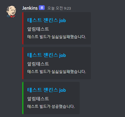 discord notifier 플러그인: https://www.jenkins.io/doc/pipeline/steps/discord-notifier/