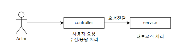 그러다보니, 저처럼 백엔드 개발자가 아닌 사람은 적응하기 어렵습니다. boiler template을 여러개 살펴보고 결정한 레이어는 controller, service 레이어로 결정했습니다. 단순히, 외부 요청과 응답을 처리하는 레이어와 내부로직을 처리 레이어로 분리했습니다.
