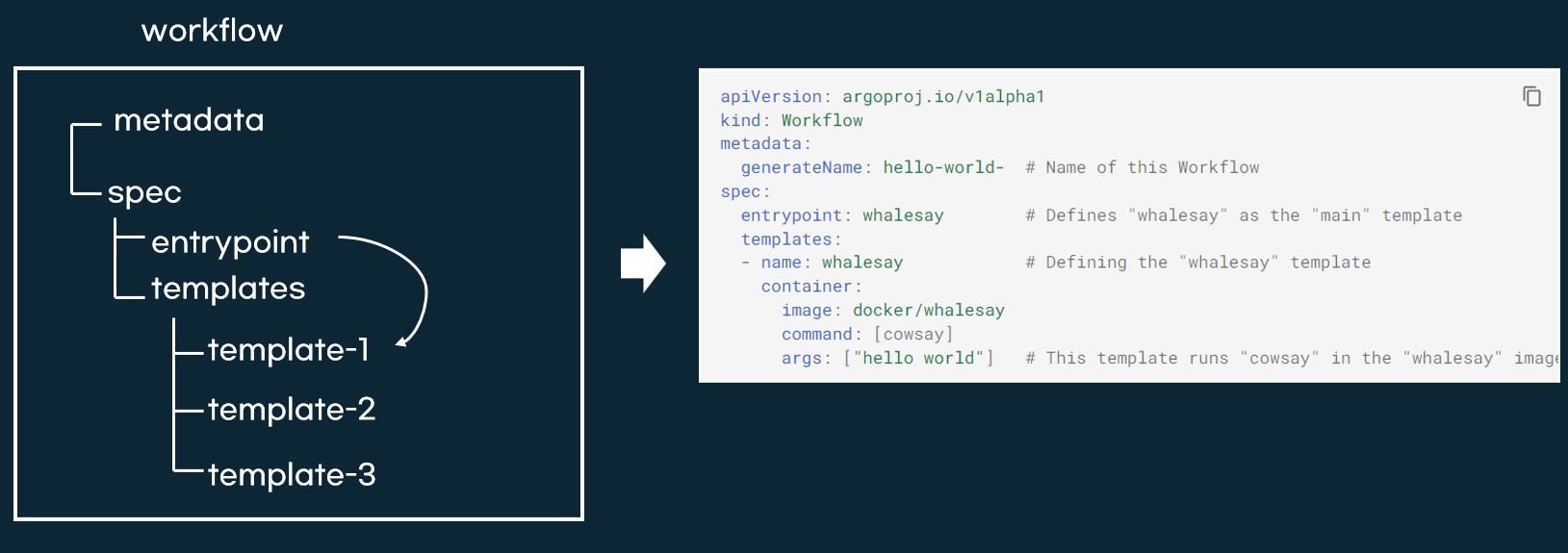 더 자세한 내용은 공식문서(https://argoproj.github.io/argo-workflows/walk-through/the-structure-of-workflow-specs/)를 참고하시길 바랍니다.