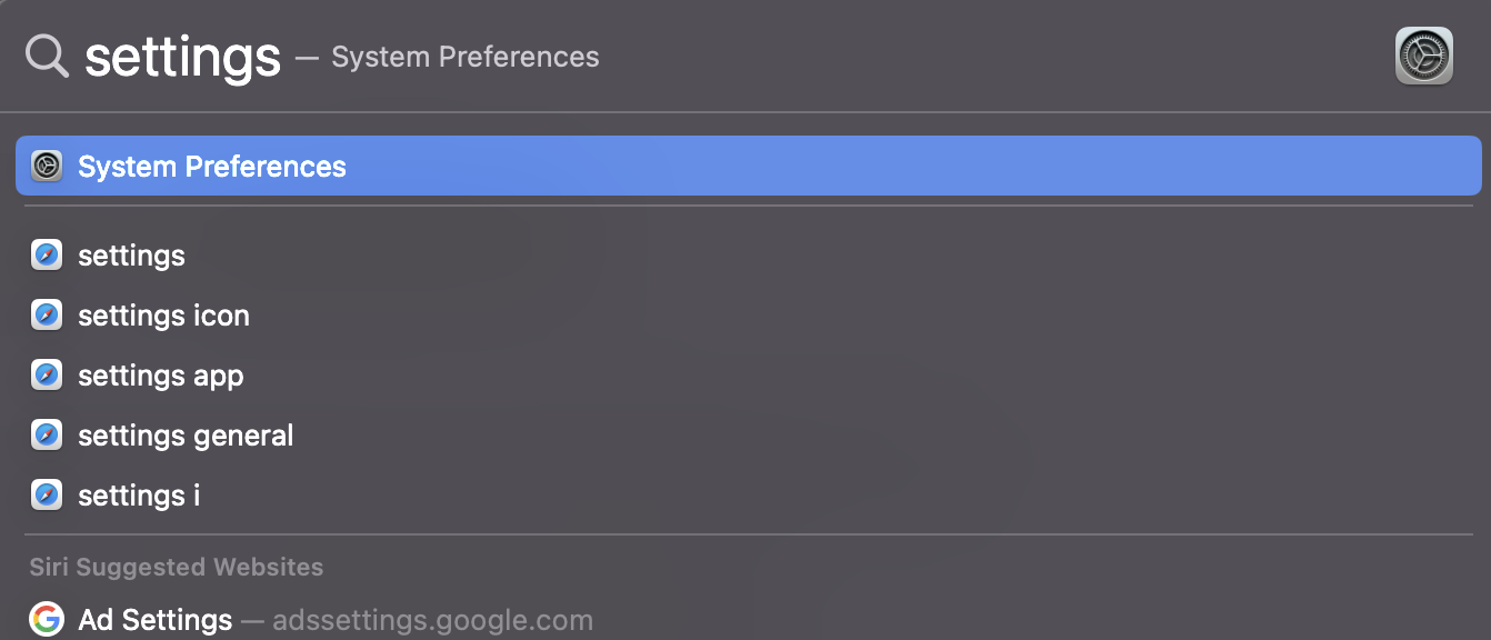 1️⃣ spolit(ctrl + space)에서 settings를 입력하여 설정창을 엽니다.