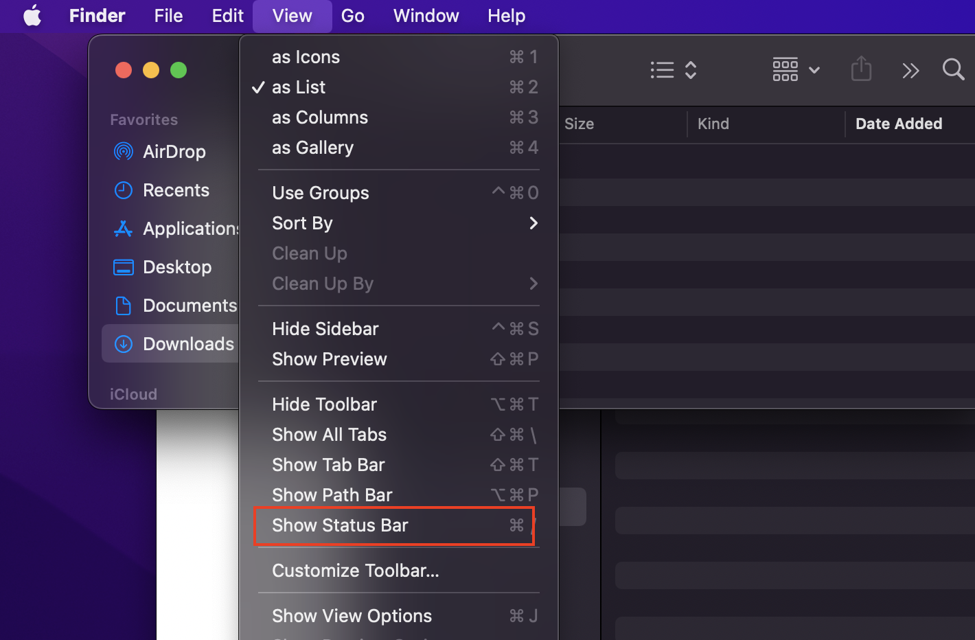 [View] → [Show status bar]로 활성화 할 수 있습니다.