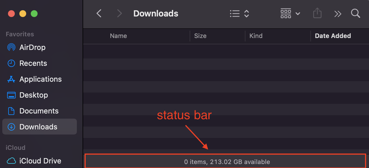 status bar는 저장장치 전체 용량과 현재 선택한 파일 갯수 등 상태정보를 표시합니다.
