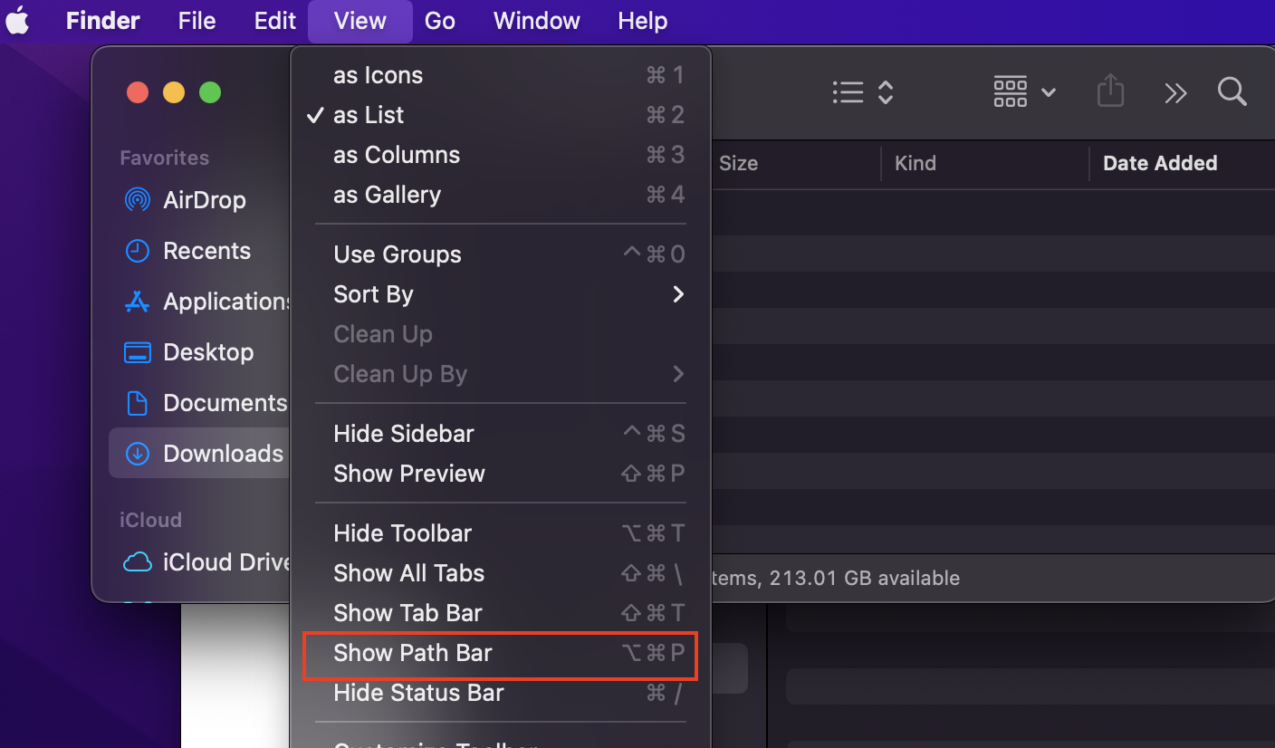 [View] → [Show Path Bar]로 활성화 할 수 있습니다.