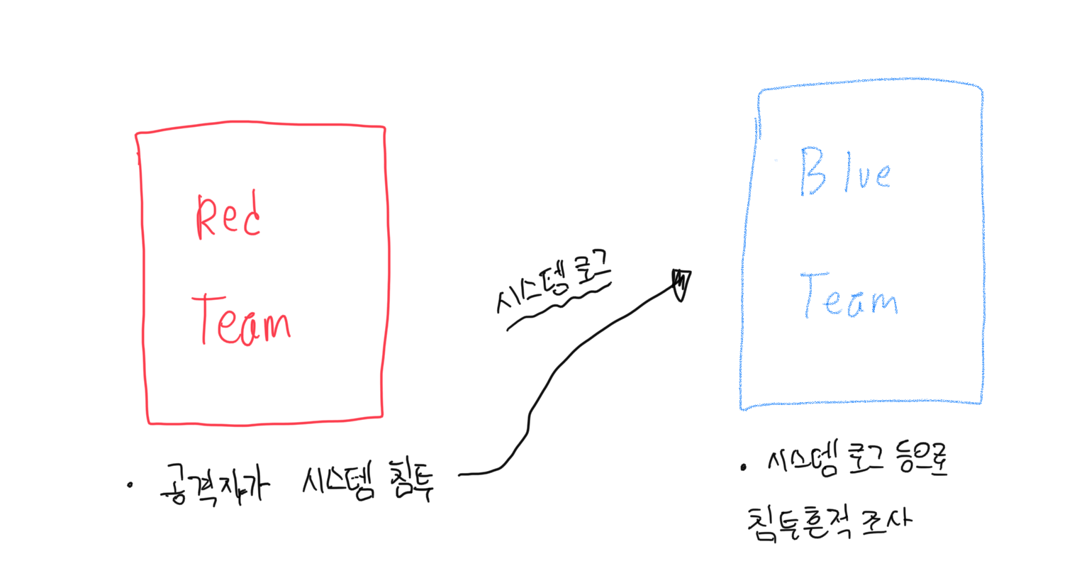 레드팀은 먼저 시스템에 침투한 후, 블루팀에게 넘겨줍니다. 블루팀은 로그 등을 분석하여 어떻게 침투하는지 분석합니다.