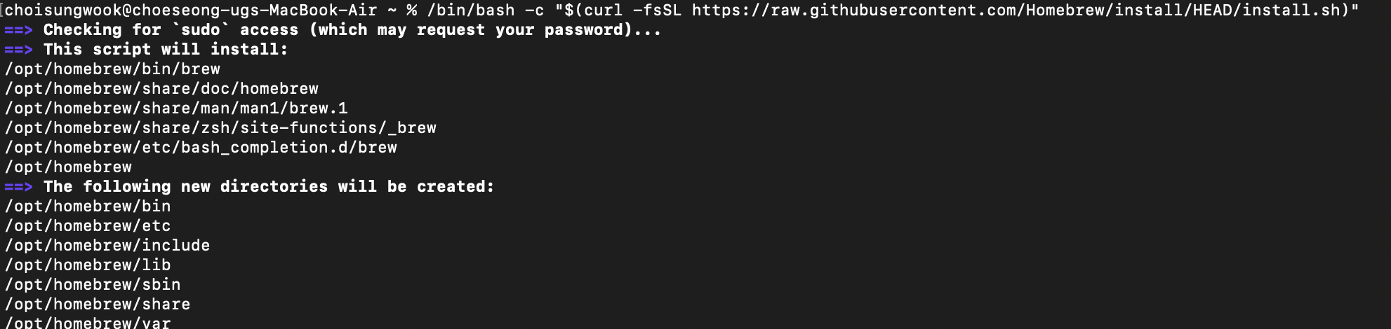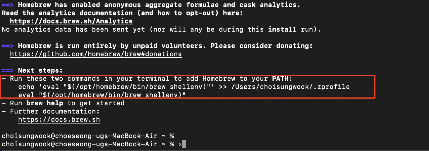 echo 'eval "$(/opt/homebrew/bin/brew shellenv)"' >> /Users/choisungwook/.zprofile
