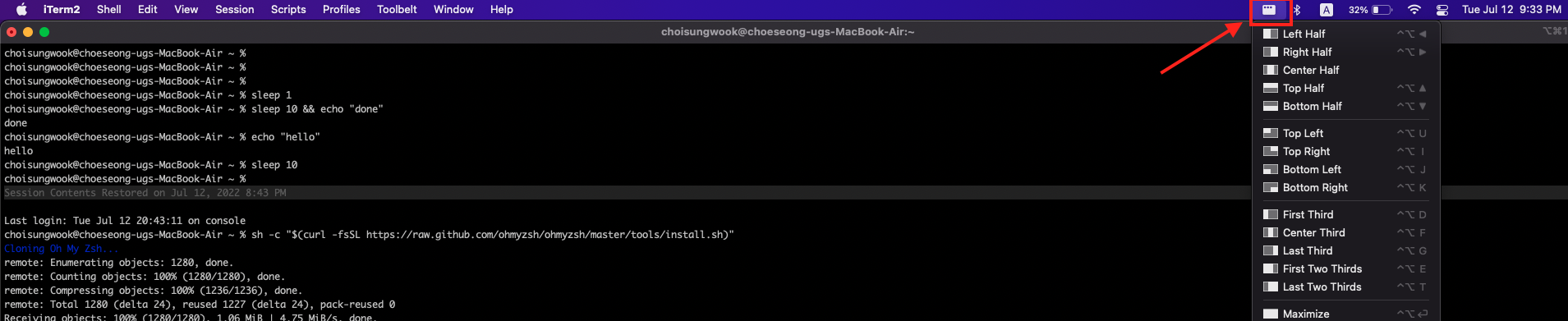 | 맥북 iterm2, om my zsh 설치 (0) | 2022.07.12 |