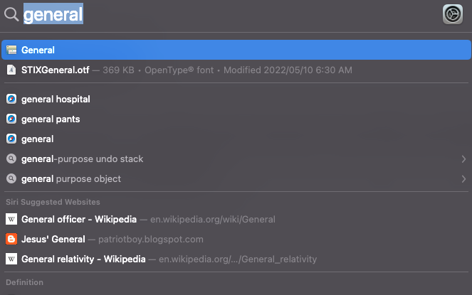 1️⃣ spotlight(command + space)에서 General를 입력합니다.
