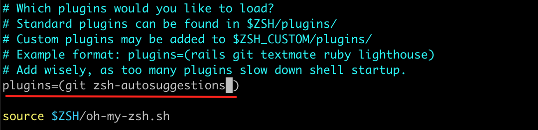 git clone https://github.com/zsh-users/zsh-autosuggestions ~/.oh-my-zsh/custom/plugins/zsh-autosuggestions