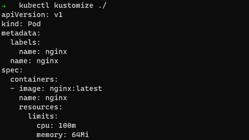 이제 kustomize 도구를 사용해보겠습니다. kustomize build 명령어가 kubectl에 내장되어 별도 설치가 필요 없습니다. kubectl kustomize명령어로 kustomize를 실행할 수 있는데요!. stdout으로 실행결과가 출력됩니다.