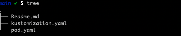 pod.yaml과 kustomization.yaml파일이 실습에 필요한 파일입니다. kustomization.yaml파일은 kustomize를 실행하기 위한 설정 파일입니다. 아직 알아가는 단계이니 자세한 설명은 생략하겠습니다