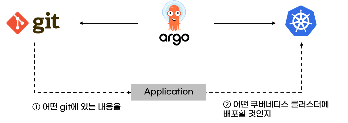 결국, argocd를 관리(또는 사용)한다는 것은 application을 관리하는 것과 같은 의미입니다. application은 어떤 git에 있는 내용을 어떤 쿠버네티스 배포할지를 설정합니다.