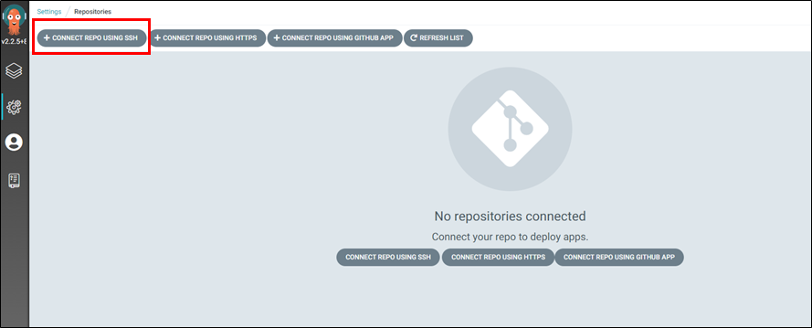 private repo관리 기능은 버전이 낮은 Argo CD에 버그가 있습니다. 높은 버전 Argo CD를 사용하시길 바랍니다.
