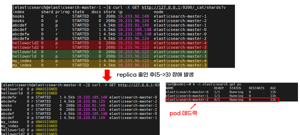 엘라스틱서치 Replica 줄일 때, 장애 상황