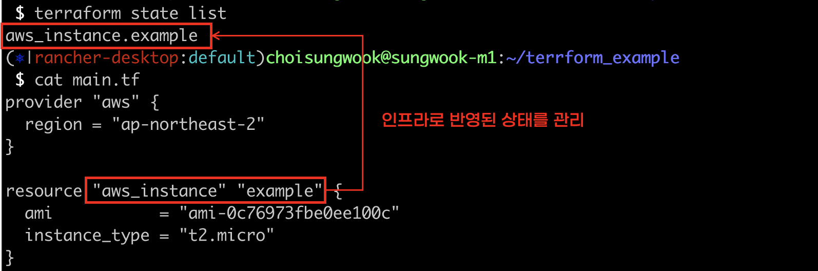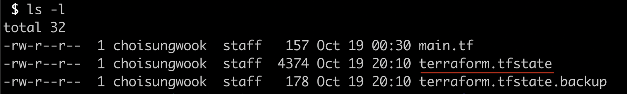 테라폼은 코드를 인프라로 반영하면, 반영 상태를 파일로 관리합니다. 파일 확장자는 tfstate입니다.
