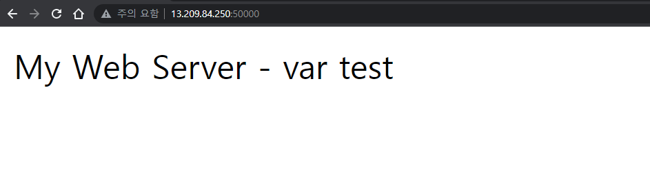 http://public_ip:50000으로 접근하면 EC2 Instance에 실행되고 있는 웹 애플리케이션 응답을 볼 수 있습니다.