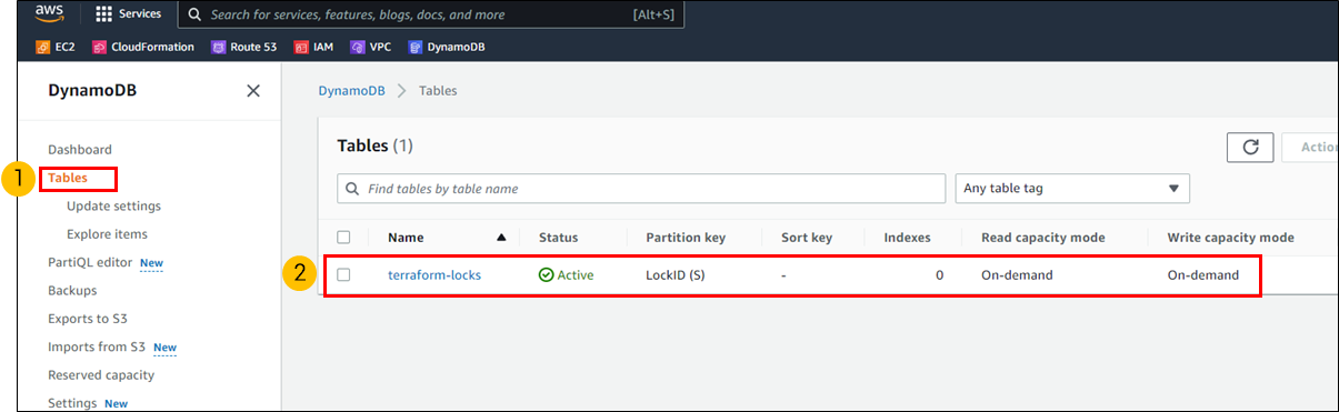 실습에서는 aws dynamodb을 이용하여 locking합니다. [챕터 2]에서 사용한 s3와 같이 사용해야 합니다.