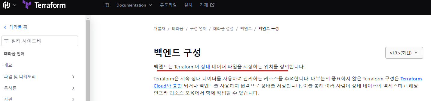 상태파일 동기화 문제는 테라폼 backend를 이용하여 해결할 수 있습니다. backend는 상태파일을 저장하는 위치를 설정합니다. 설정되지 않으면 로컬에 저장됩니다.