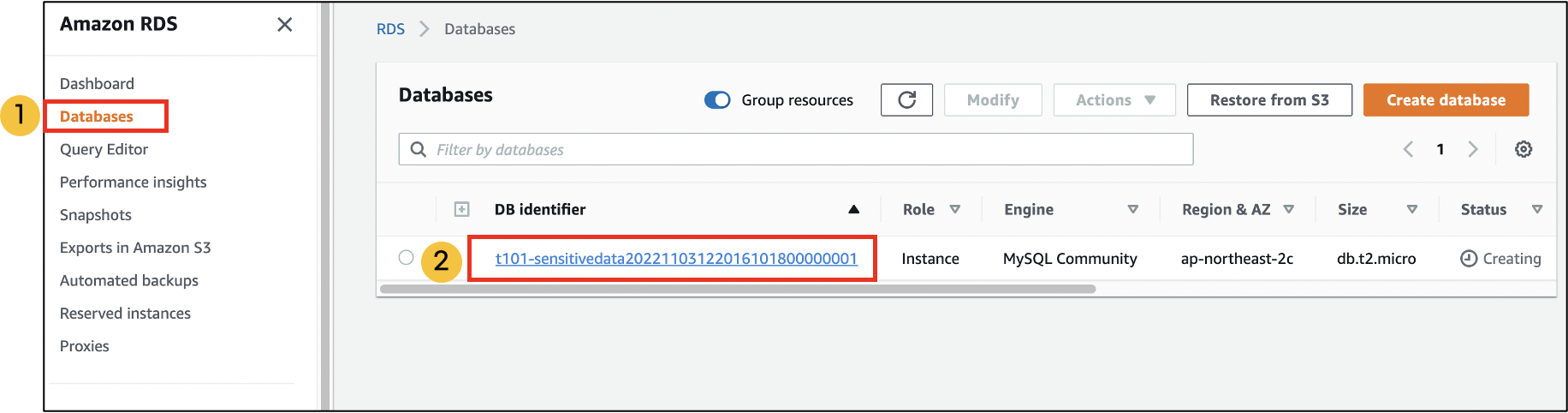 RDS대시보드를 방문하여 RDS가 생성되었는지 확인합니다.