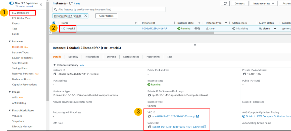 aws EC2 Instance대시보드를 확인하면 EC2 instsnace가 원격상태파일의 subnet설정으로 잘 생성되었습니다.