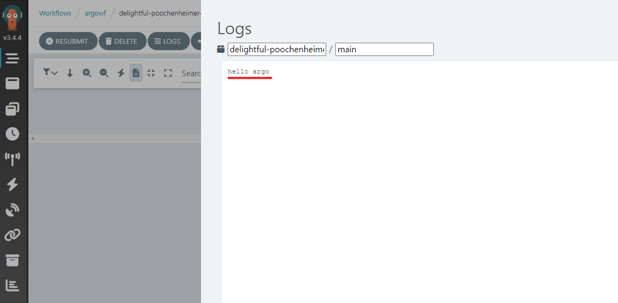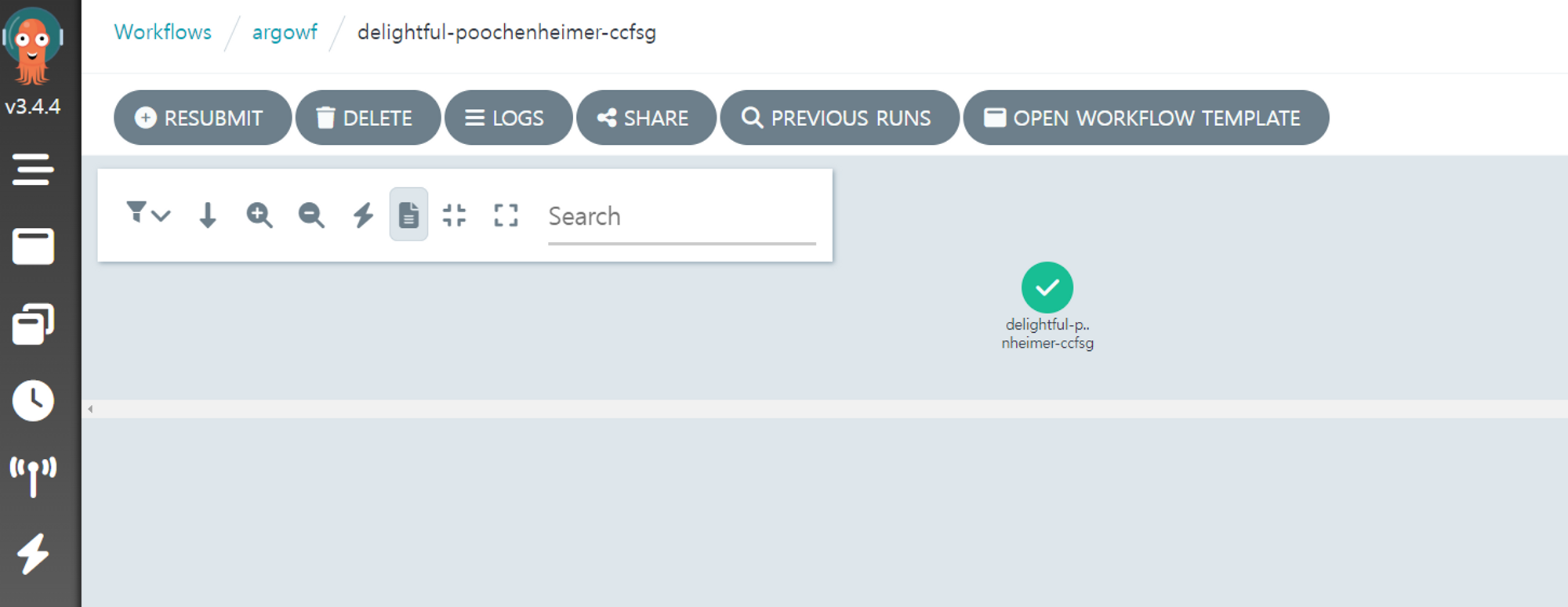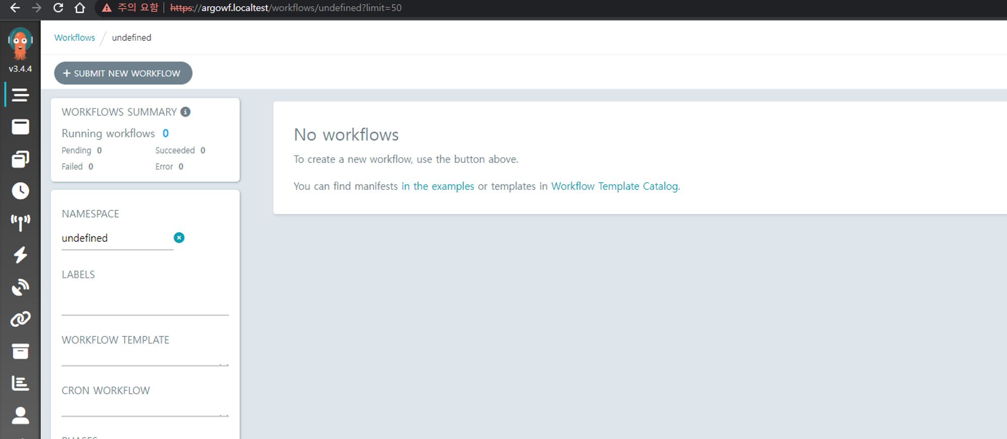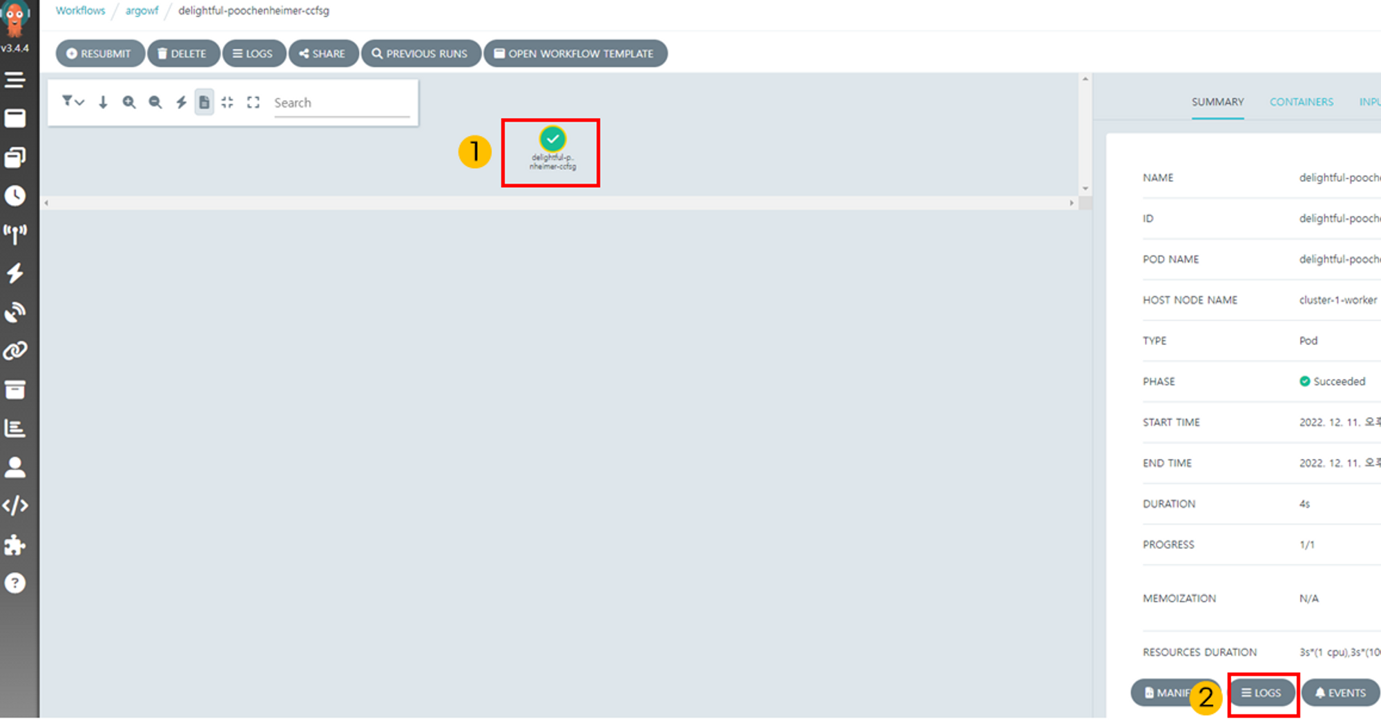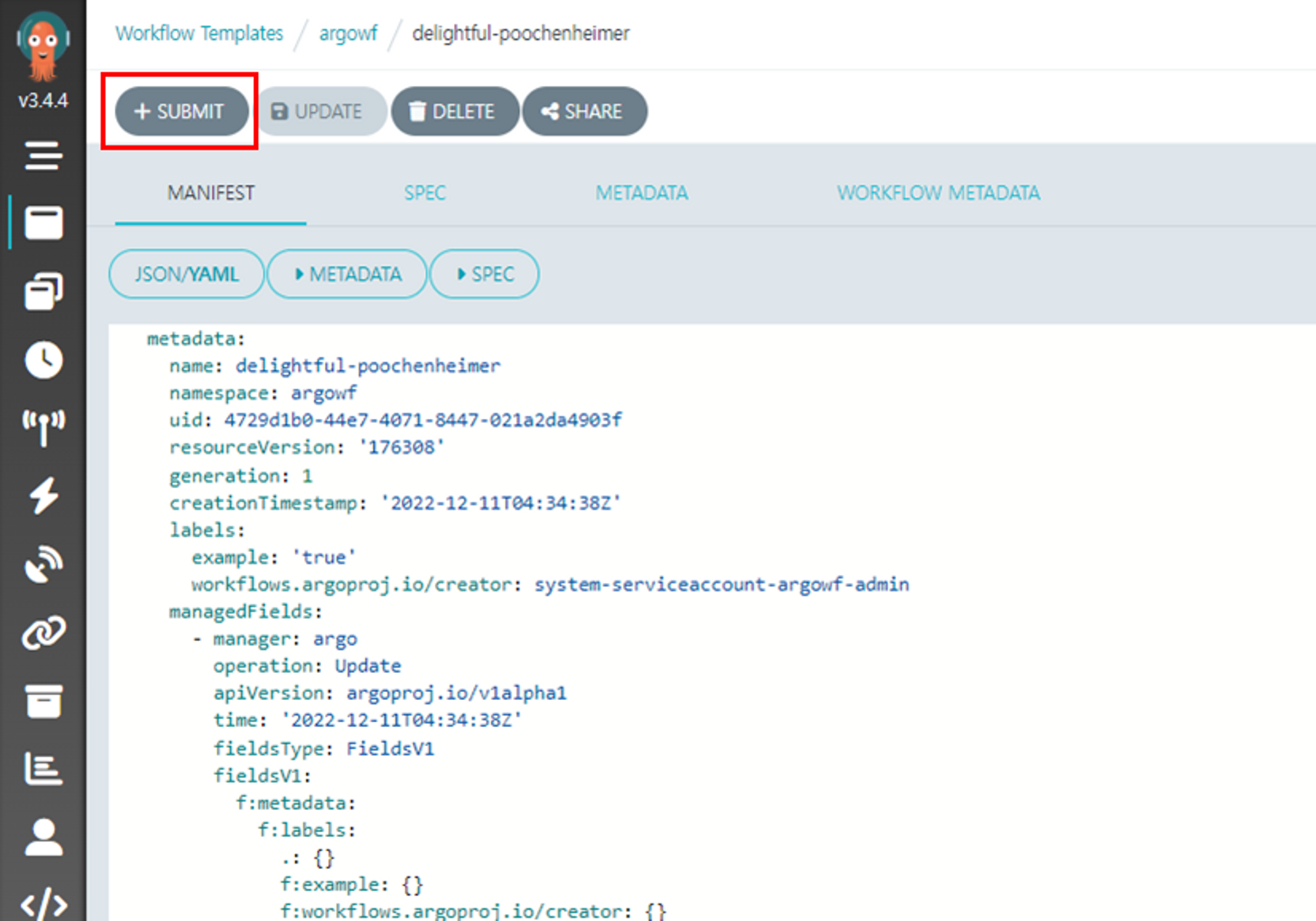 생성한 workflowtemplate에서 Submit버튼을 클릭하여 workflow을 생성합니다.