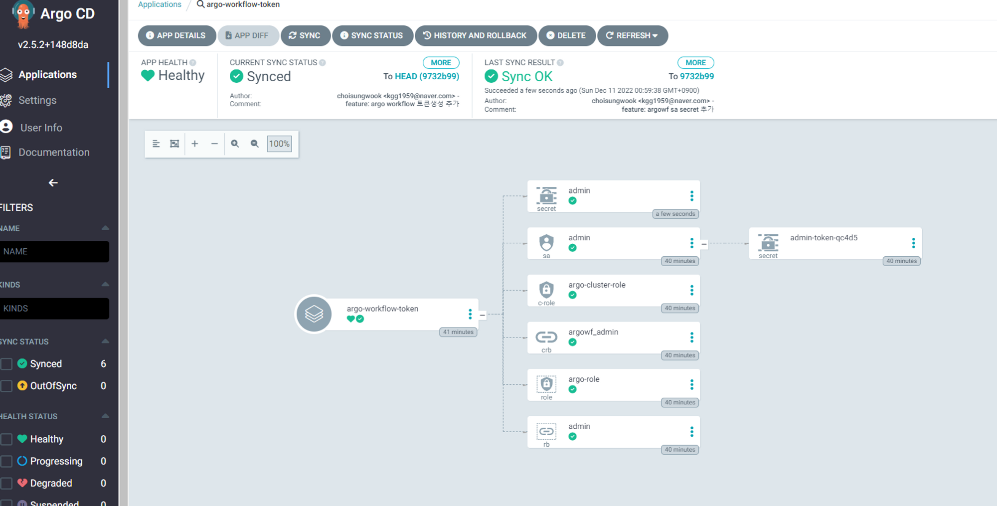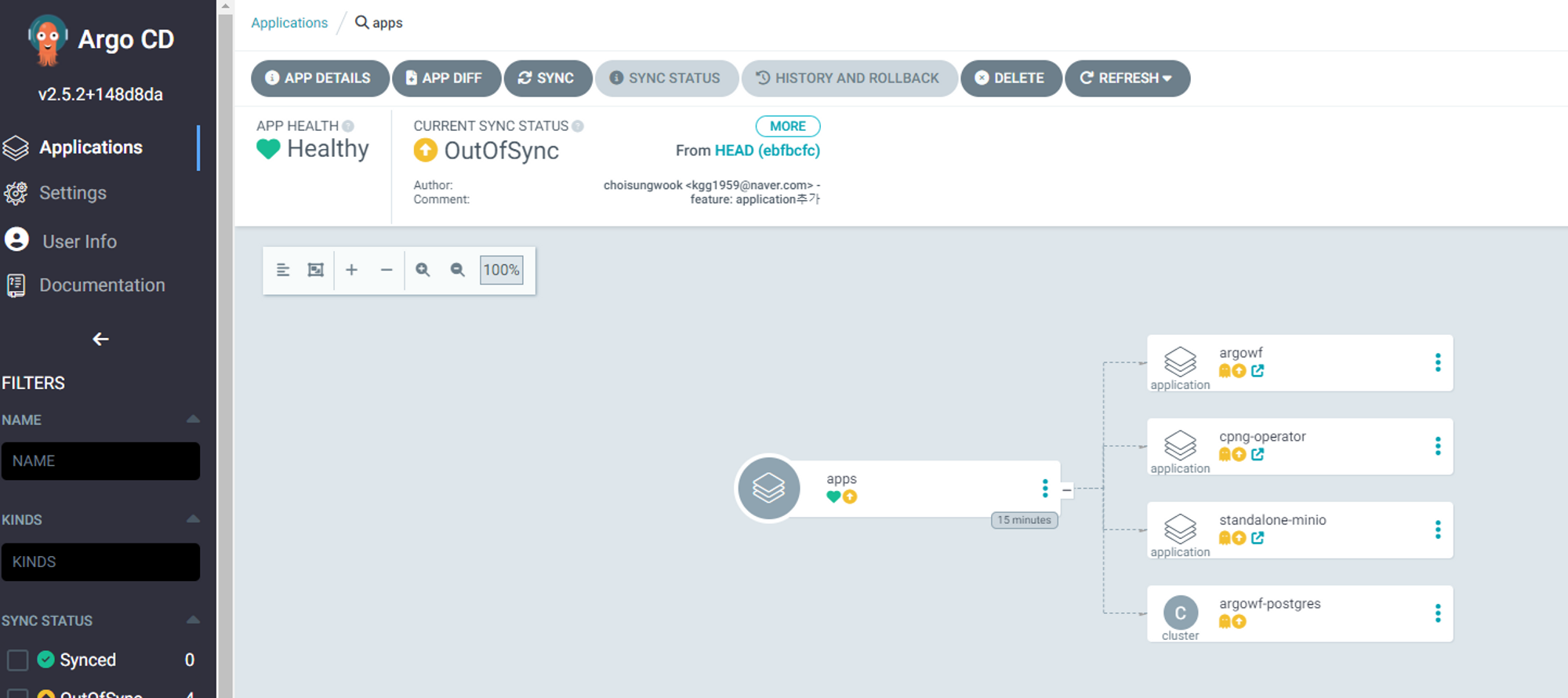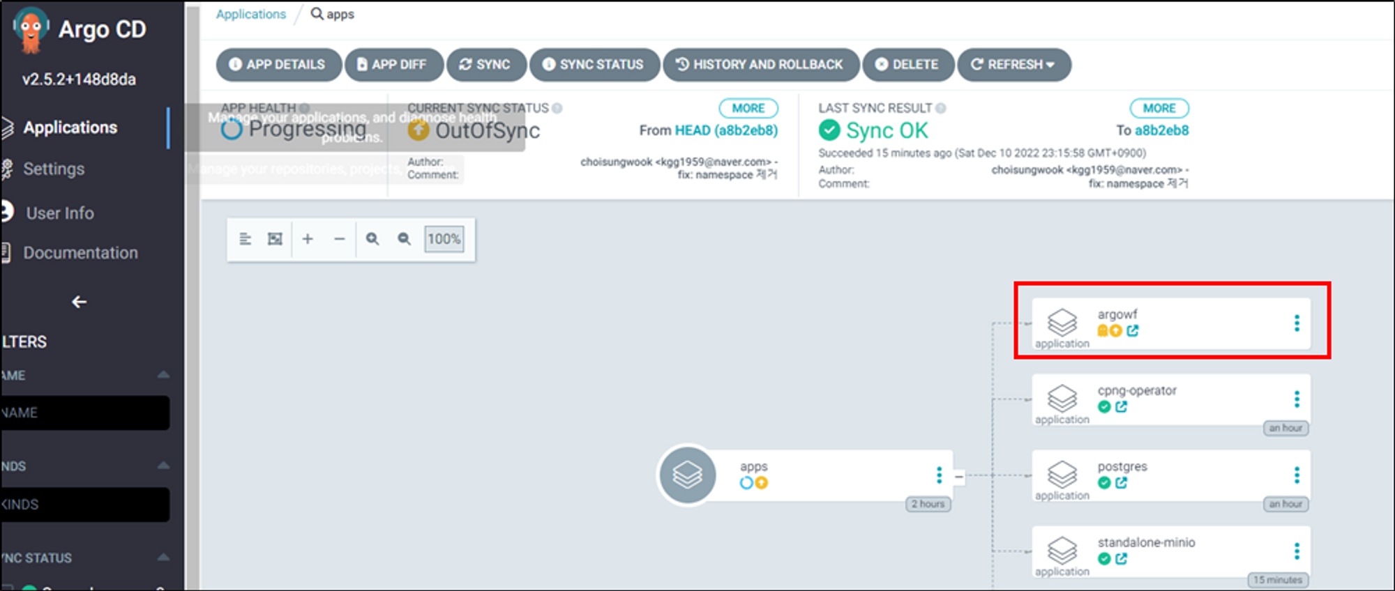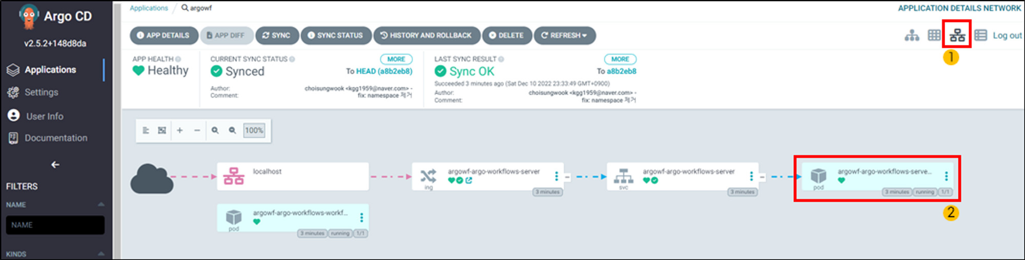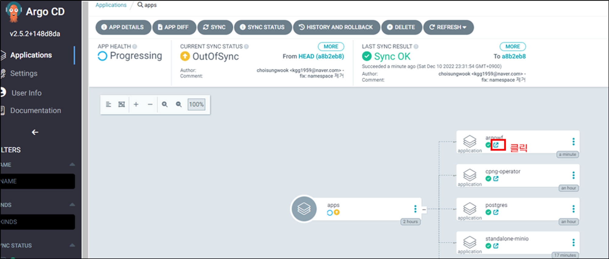 argo workflow application상세페이지로 이동합니다.