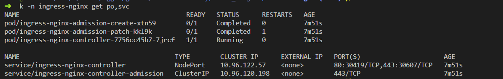 ingress controller 리소스가 잘 생성되었는지 확인합니다.