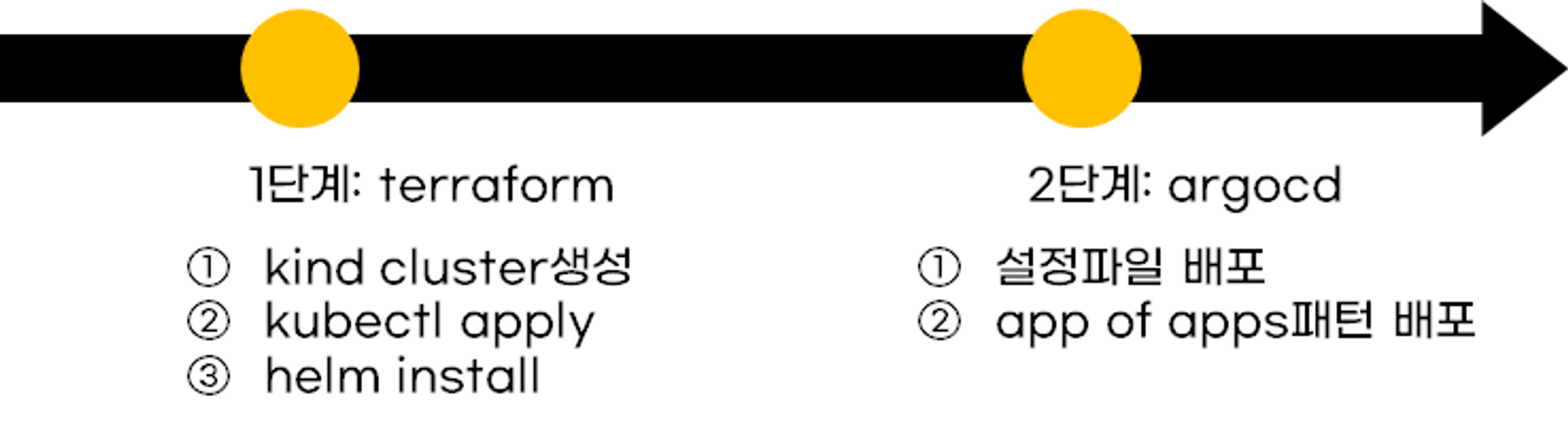 테라폼 스터디에서 기억에 남는 것 중에 하나가 모든 것을 자동화하는 것은 고민해봐야 한다였습니다. 그래서 테라폼이 어느범위까지 자동화를 다룰 것인가를 생각했고 argocd의 테라폼으로 다루지 않기로 결정했습니다.