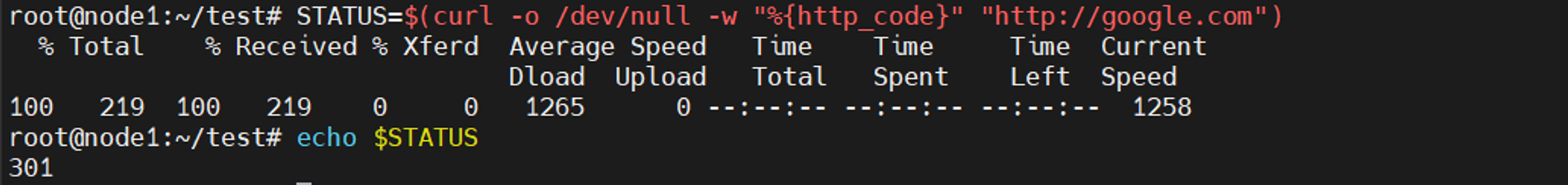 STATUS=$(curl -o /dev/null -w "%{http_code}" "http://google.com")