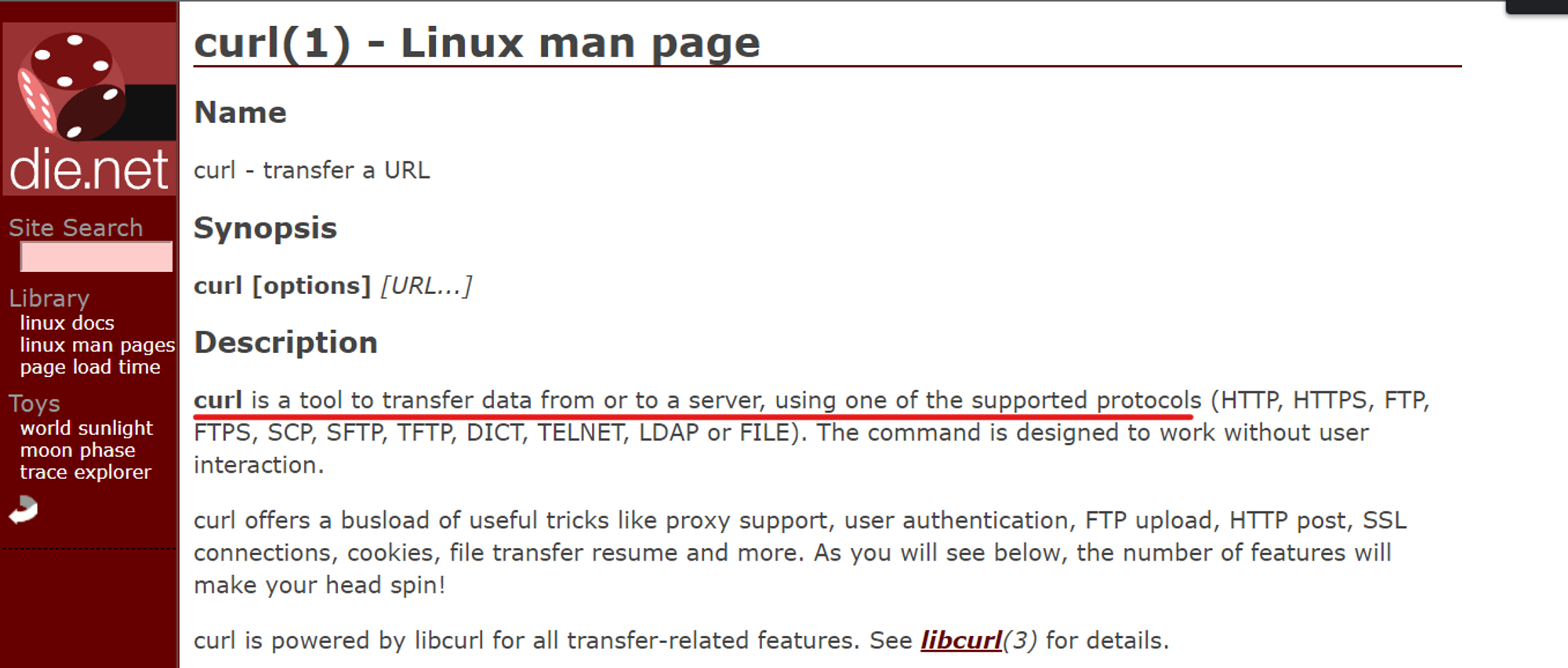 curl은 특정 프로토콜을 이용하여 데이터를 전송하는 리눅스 프로그램입니다.