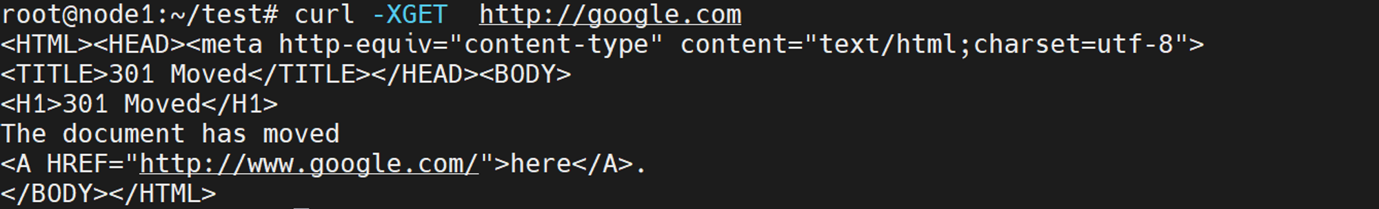 curl 명령어 뒤에 http주소를 입력하면 GET요청을 합니다. google.com에 http요청을 하니 301응답을 받았습니다. 아마도 https로 이동하라는 301 리다이렉트 응답을 받은 것 같네요.