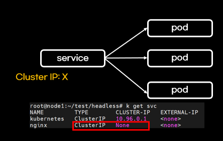 headless서비스는 pod를 그룹으로 관리하고 POD IP목록을 직접 조회가 필요한 아키텍처에서 사용합니다. master/slave, 클러스터 등 아키텍처를 가지고 있는 데이터베이스에서 많이 사용합니다.