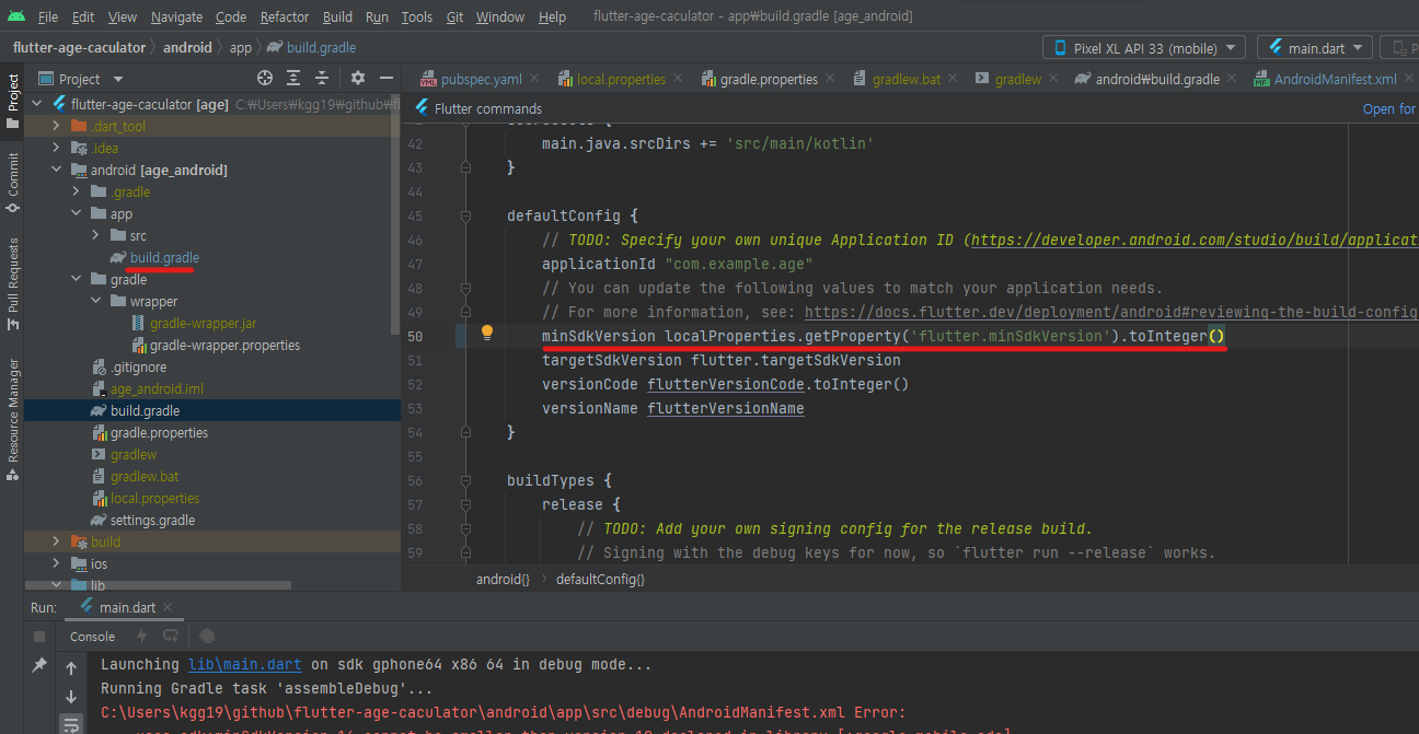 그리고 build.gradle에서 local.properties minsdk설정을 읽을 수 있도록 수정합니다.