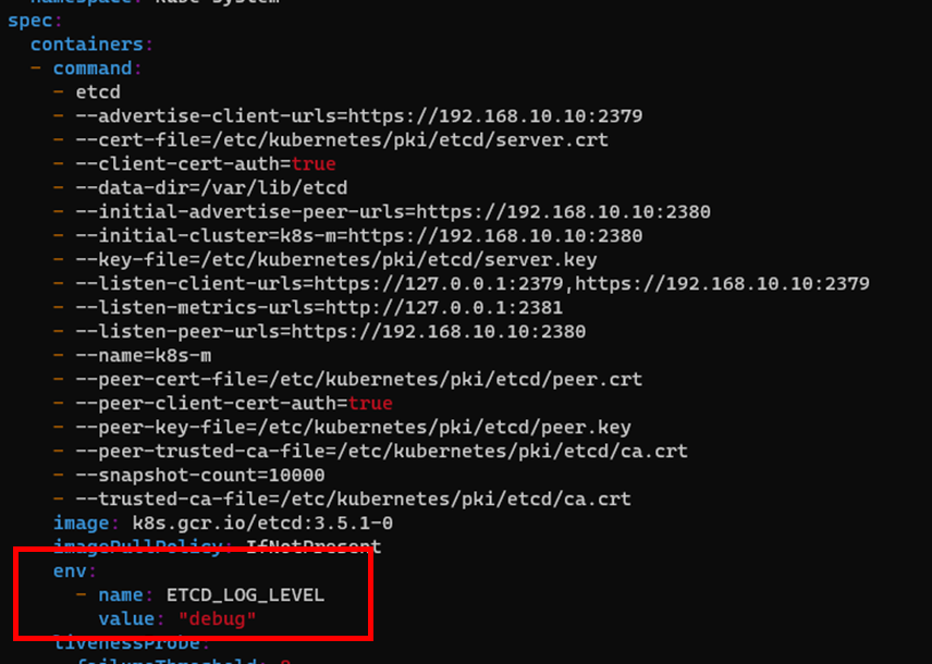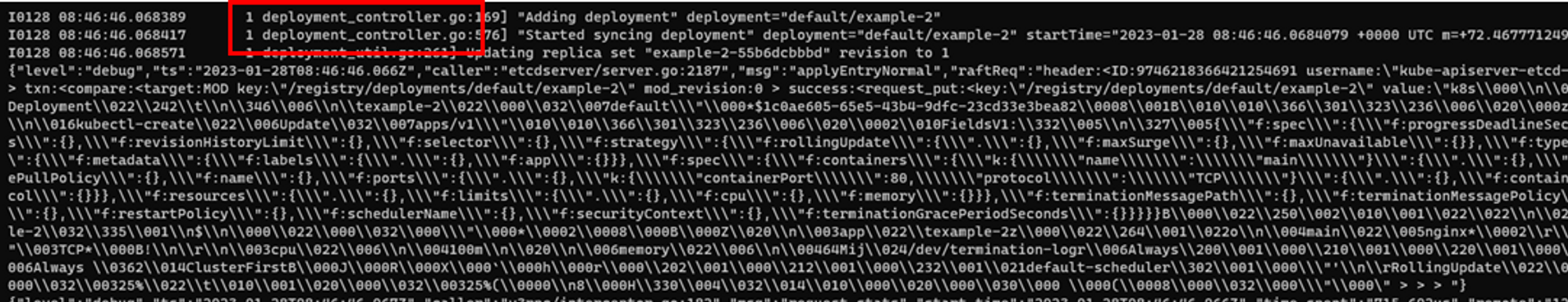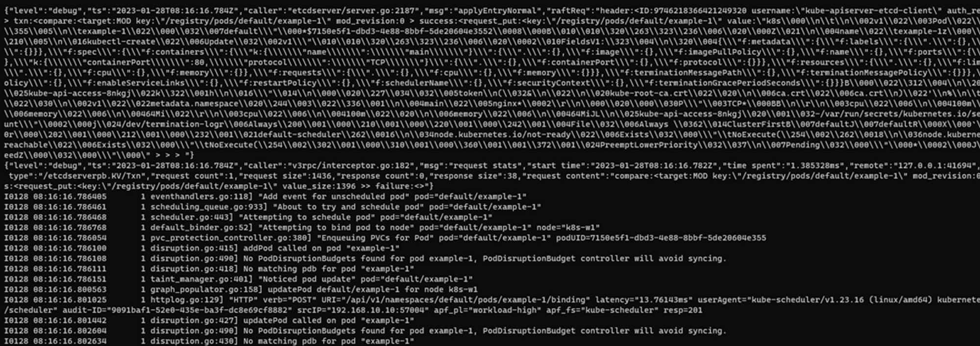 - log level를 수정해야 control-plane component 많은 활동을 볼 수 있다. 하지만 운영단계에서 적용하면 스토리지 용량관리가 안되므로 테스트에서만 사용해야할 것 같다.