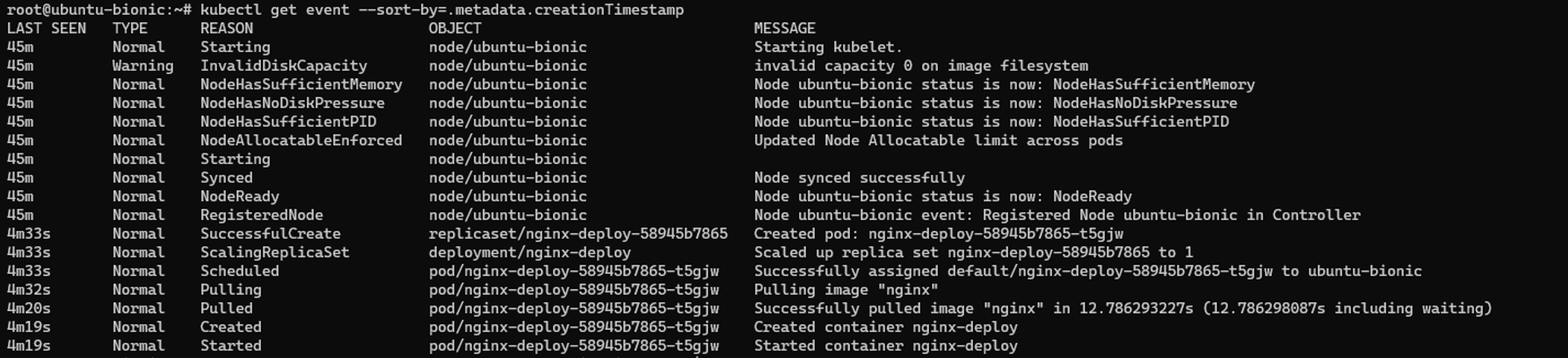 kubectl get event --sort-by=.metadata.creationTimestamp