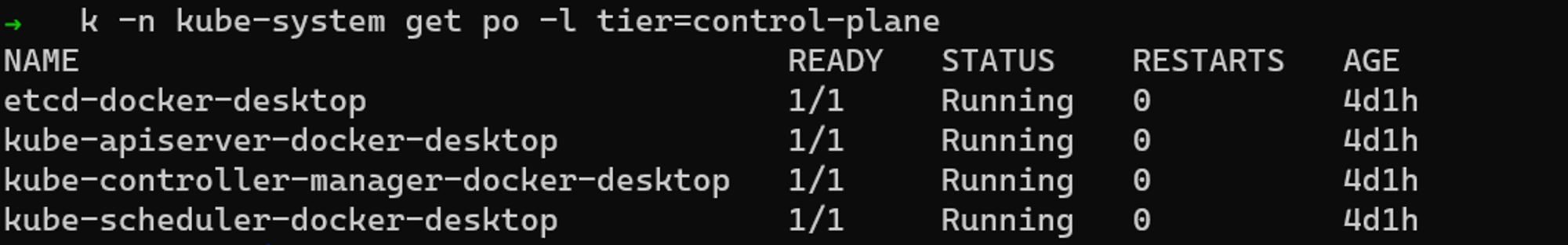 control-plane component는 kube-system namespace에 실행됩니다. control-plane이라는 라벨이 설정되어 있기 때문에 라벨 필터링이 가능합니다.